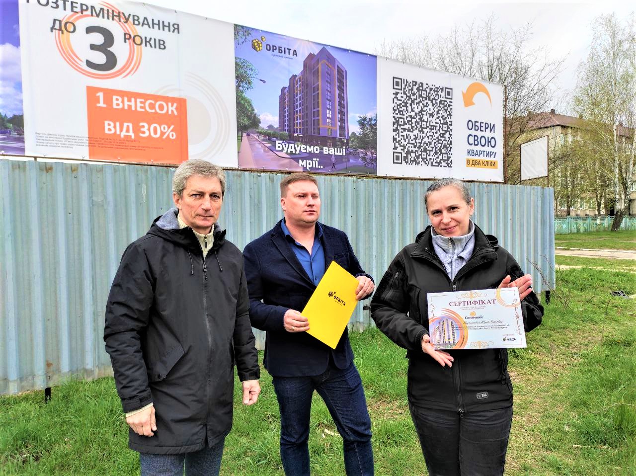 Міський голова Ігор Чайка спільно з головним директором БК “Орбіта” Андрієм Ярмолюком та представником Ковельського центру нерухомості Володимиром Шкараном вручили сертифікати на квартири дружинам військових.