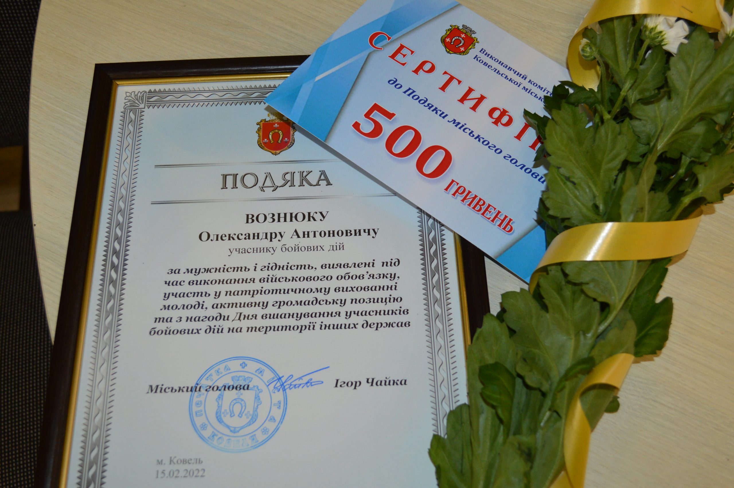 Голова Ковельської міськрайонної організації УСВА Микола Савосюк вручив нагороди від Української спілки ветеранів Афганістану.