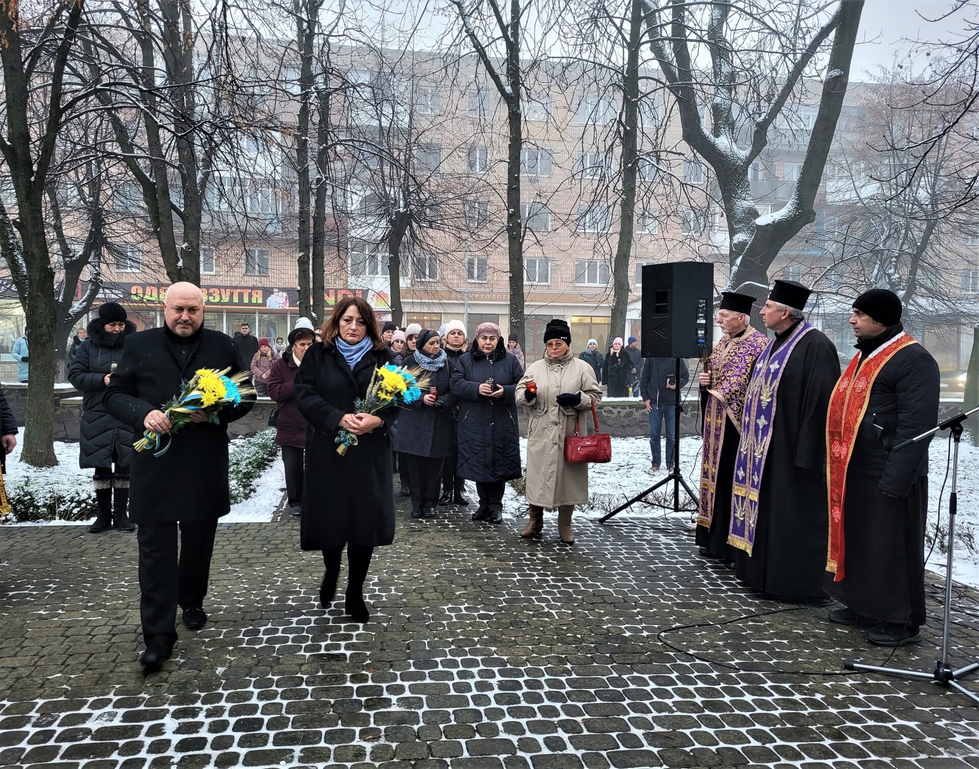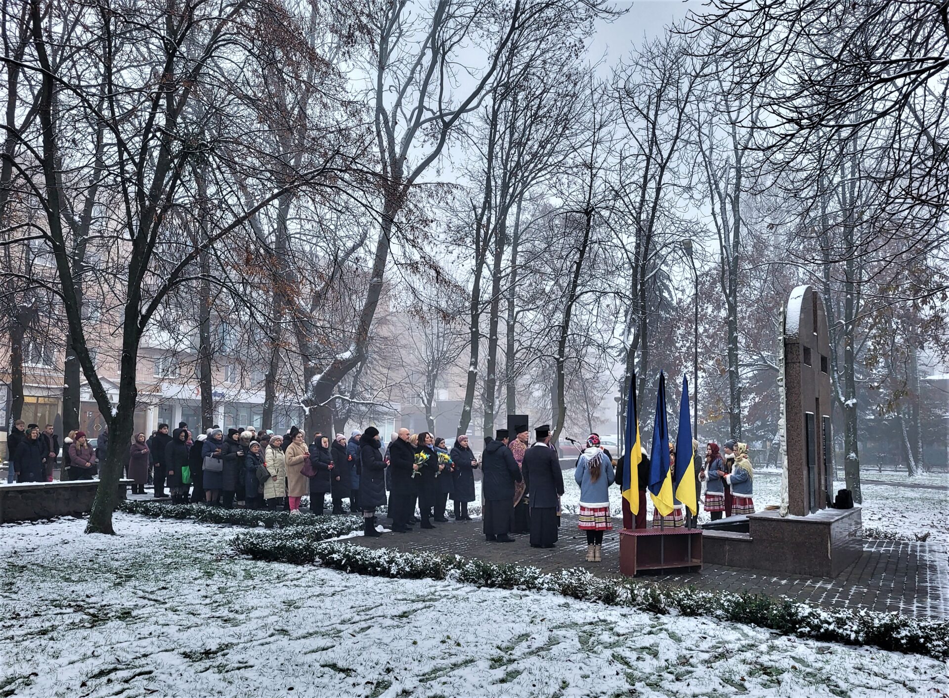 Люди принесли до меморіальної стели свічки, лампадки, тематичні квіткові композиції та доєдналися до загальнонаціональної хвилини мовчання та Всеукраїнської акції «Запали свічку пам’яті».
