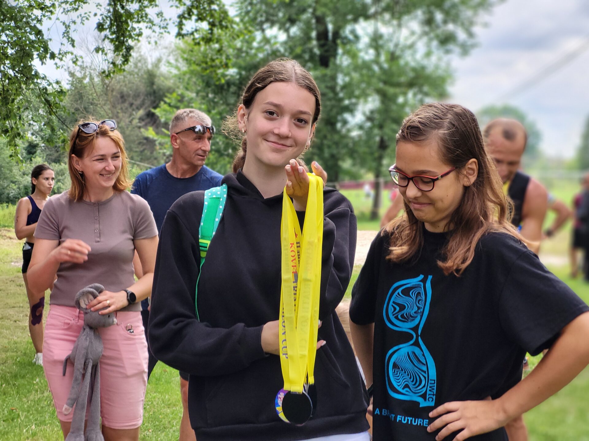 Паралельно з триатлоном проходили змагання з дуатлону. Учасники лише бігли та їхали на велосипедах. Удача посміхнулась лучанину Леоніду Музичуку. Він став переможцем у цій дисципліні.